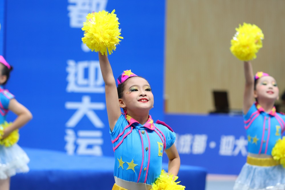赛场上,来自成都市各个区的优秀代表队为本次比赛呈现了一场精彩绝伦的视觉盛宴,在激情的音乐的节奏下,运动员们活力四射、动感有力,展示了健美操、啦啦操的活力和自信,在比赛风格上,编排新颖,队形多样,孩子们用他们整齐规范的动作、专业的认真的态度和积极向上的精神面貌,征服了赛场每一位裁判和观众,让我们看到了健康、阳光、向上的新时代少年。