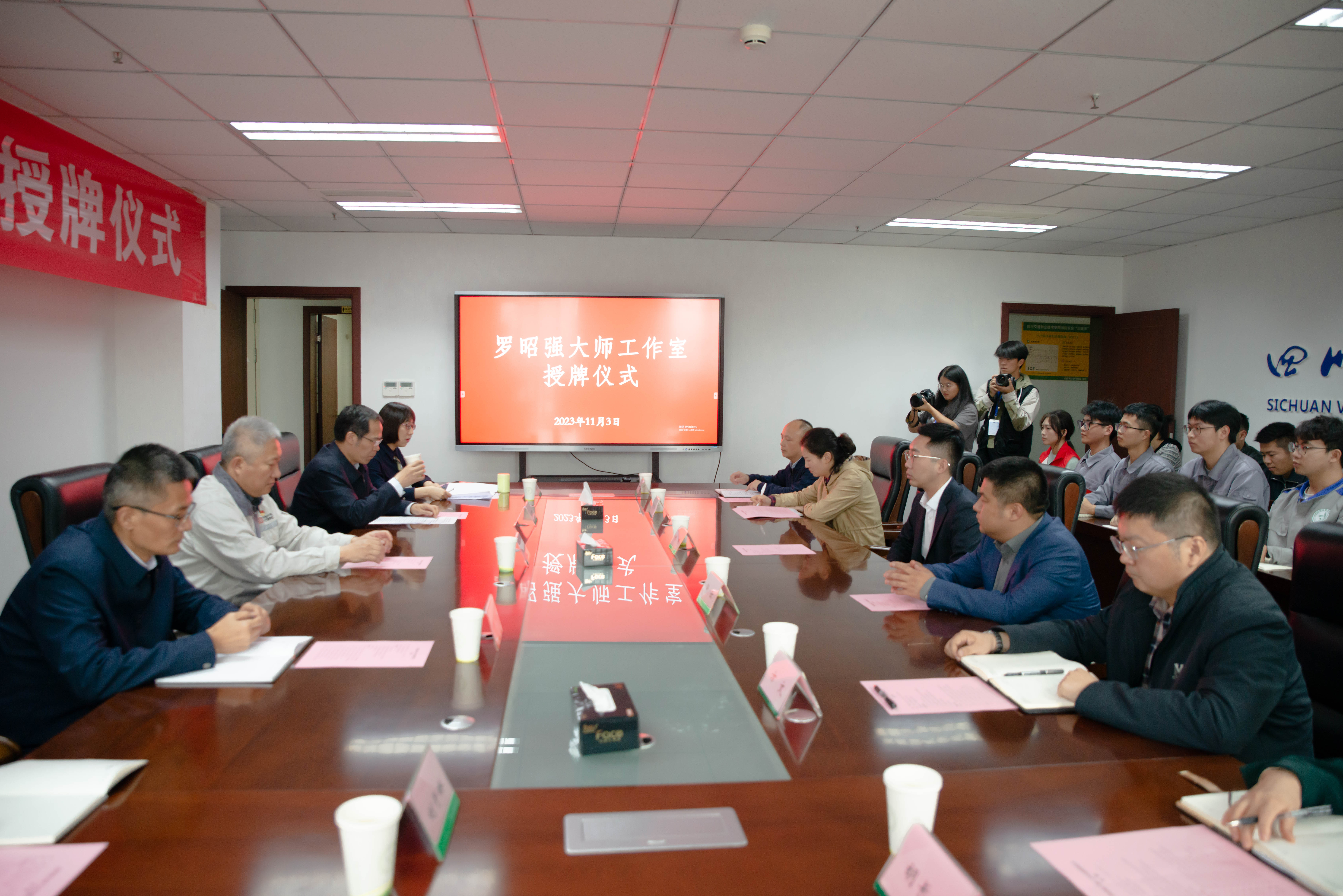 会上,冯书明对罗昭强大师一行表示诚挚的欢迎,介绍了学院希望以工作室为平台促进双方在轨道交通人才培育、师资培养等方面的深度合作,带动专业发展,共同培养出更多的杰出工匠、技能大师。肯定了工作室的建立与学院教育事业发展密切结合,符合四川交通运输发展的战略需求,将会发挥高技能领军人才在带徒传技、技能攻关、技艺传承、技能推广等方面的重要作用。并希望以此为契机,充分发挥工作室桥梁纽带、辐射带动、资源集聚作用,努力将工作室打造成校企合作样板平台,为现代职业教育体系建设、区域经济发展作出新的更大贡献。共同为社会培养高素质技术技能人才。