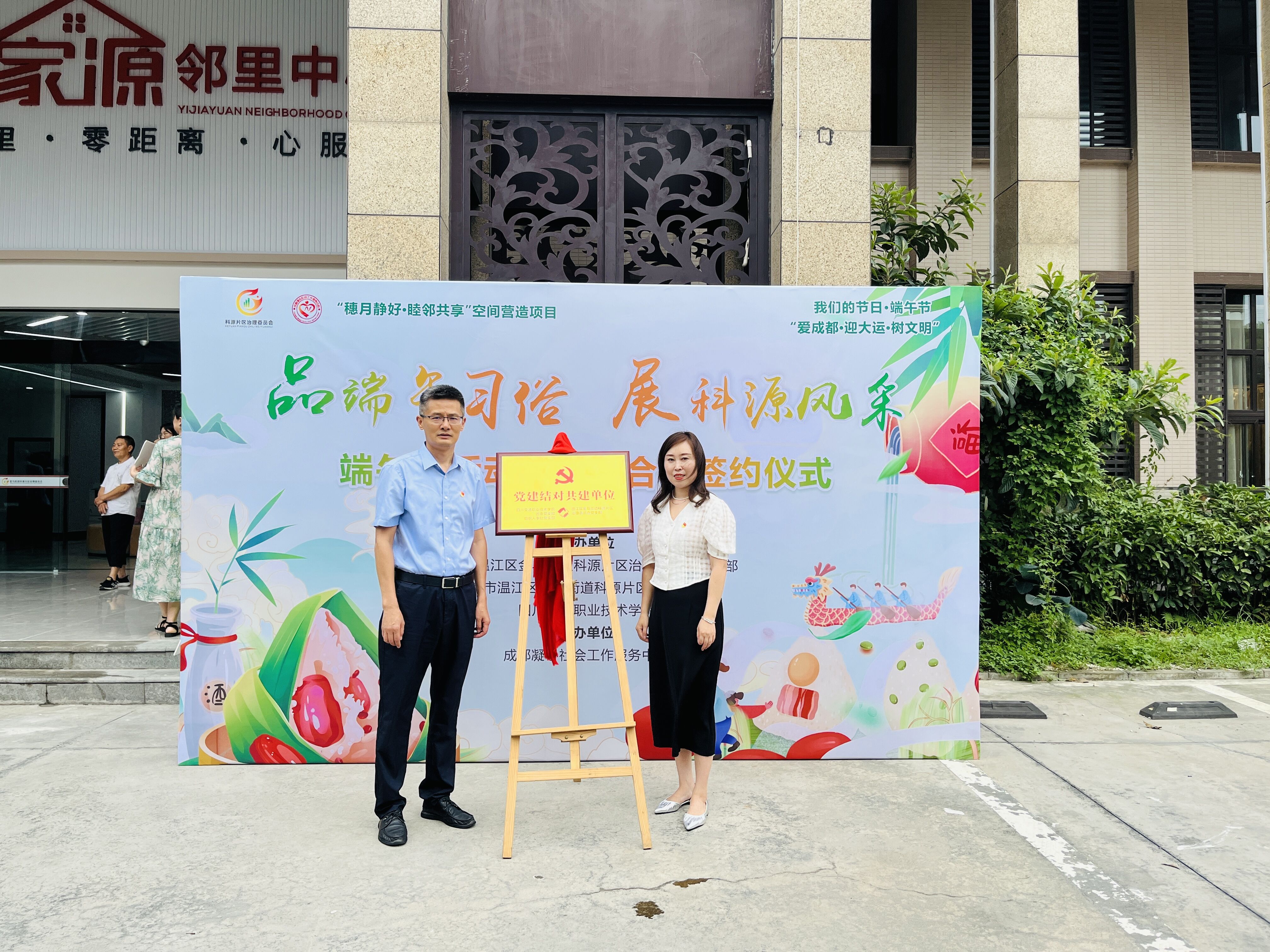 学院党委副书记李红与科源片区治理委员会党支部书记刘丽签订校社党支部共建合作协议并进行党建结对共建单位揭牌仪式。下一步,我院将通过社区共建,充分发挥党建引领作用,凝聚共建合力,着力构建资源融合、优势互补、共建共享的近邻党建共同体,推动党建引领社区、学双提升、双发展