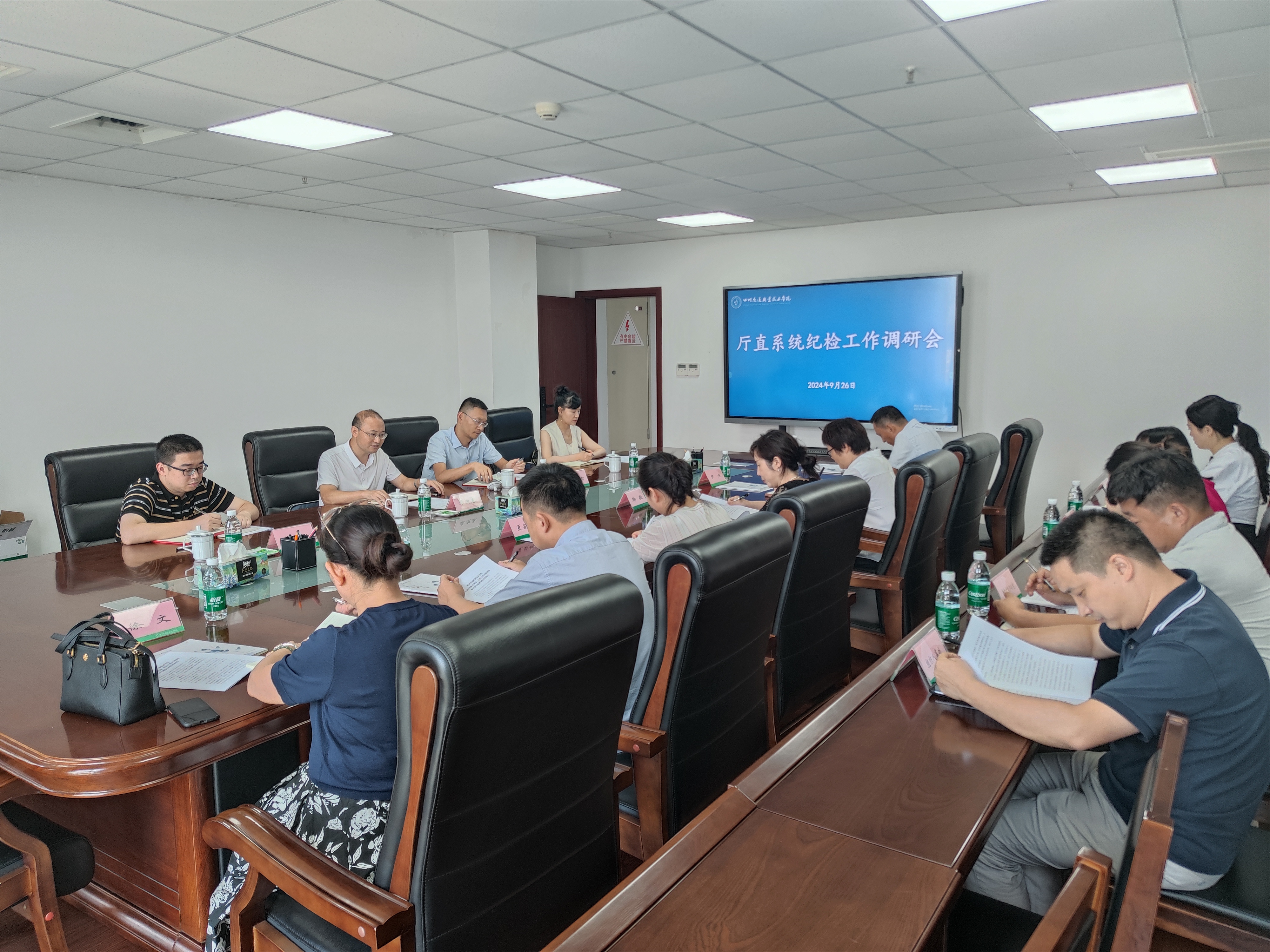 9月26日,厅直机关党委专职副书记、机关纪委书记廖迎春,厅直机关纪委专职副书记王显智一行4人,莅临学院召开厅直系统纪检工作调研座谈会。学院党委副书记、纪委书记鞠敬出席会议,学院纪委委员,党委行政办公室、纪委办公室、组织人事处、宣传统战部相关干部参加座谈会。
